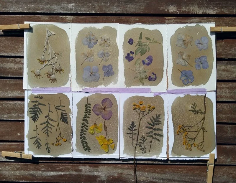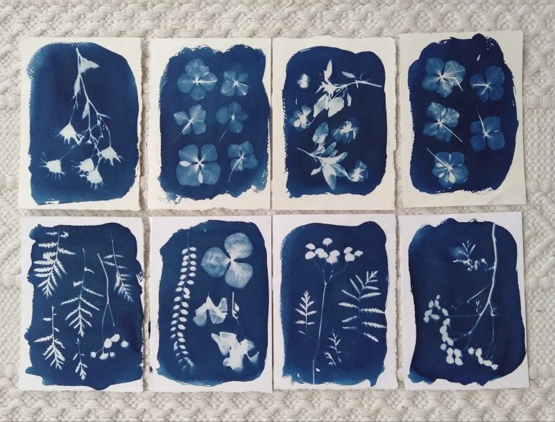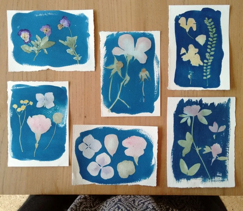 A favourite summer creative practice for me is cyanotype printing (sometimes called ‘sun printing’). I use Jacquard printing solution (like this) and have been experimenting with this fun and rather old technique for several years now. If it's new to you, here's a good explanation.