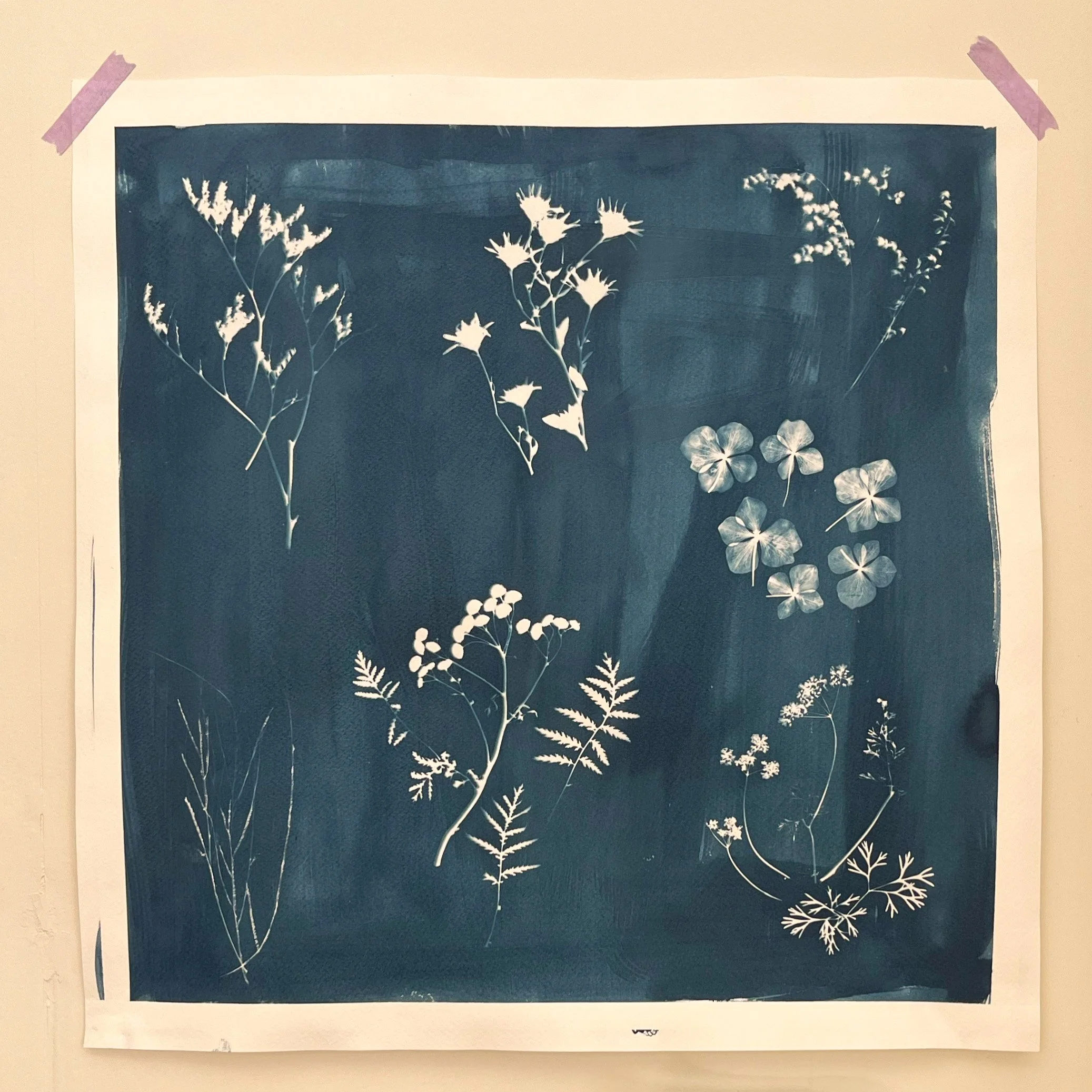 Cyanotype requires practice and experimentation. I've used the wrong type of paper, over-exposed and under-exposed, failed to secure my printed matter properly, had insects obscure my prints and many more challenges. But as with many things, it's an extended process of trial and error.