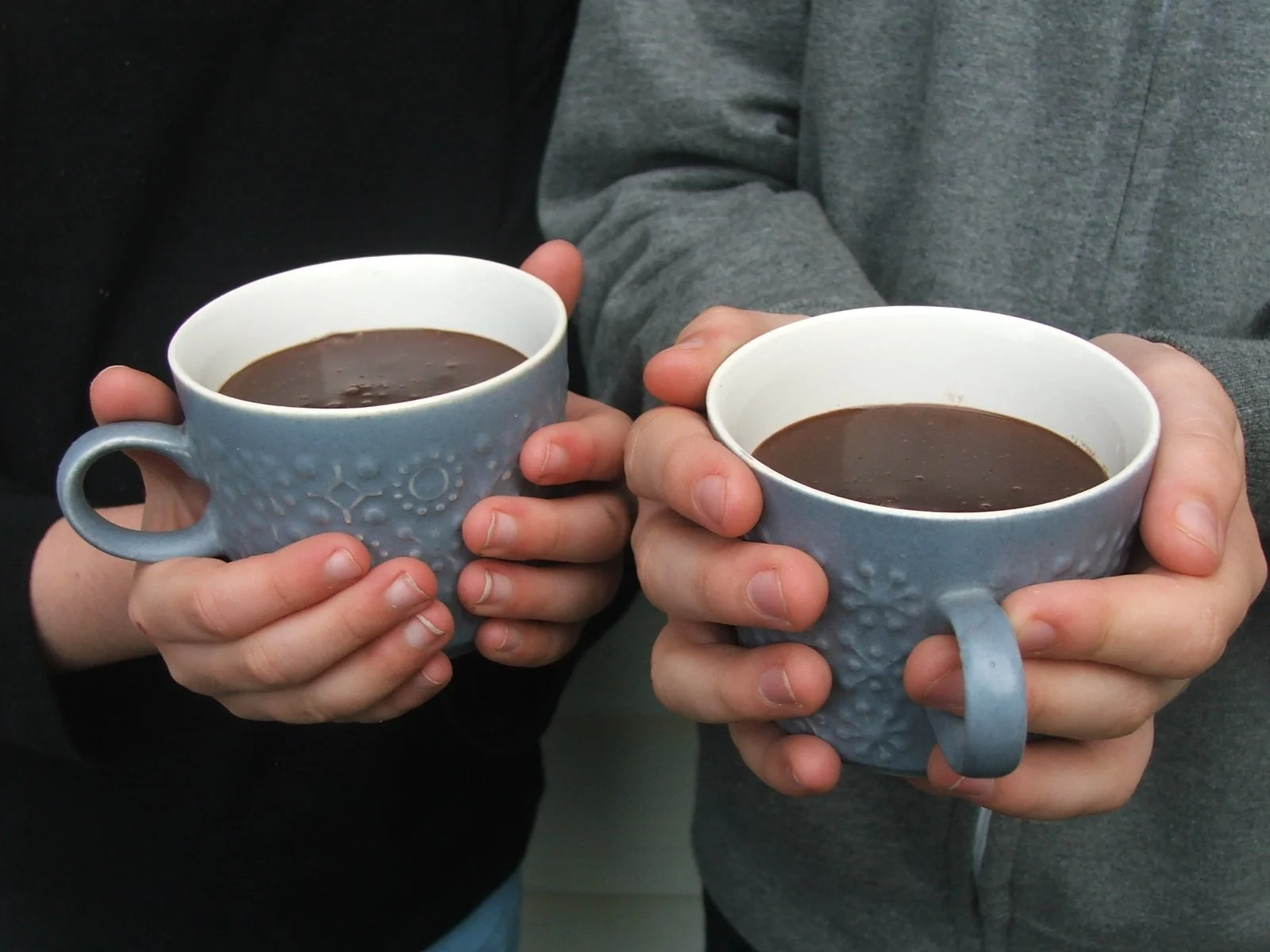 Slowly warm up on the stovetop and gradually whisk in 4 cups milk (this makes four good servings but you could add less milk if you prefer.) Heat the hot chocolate over a medium heat, whisking all the while to make sure it's smooth. When it's slightly thickened, pour into mugs and let cool a little before giving to kids. Or adults- everyone likes it!