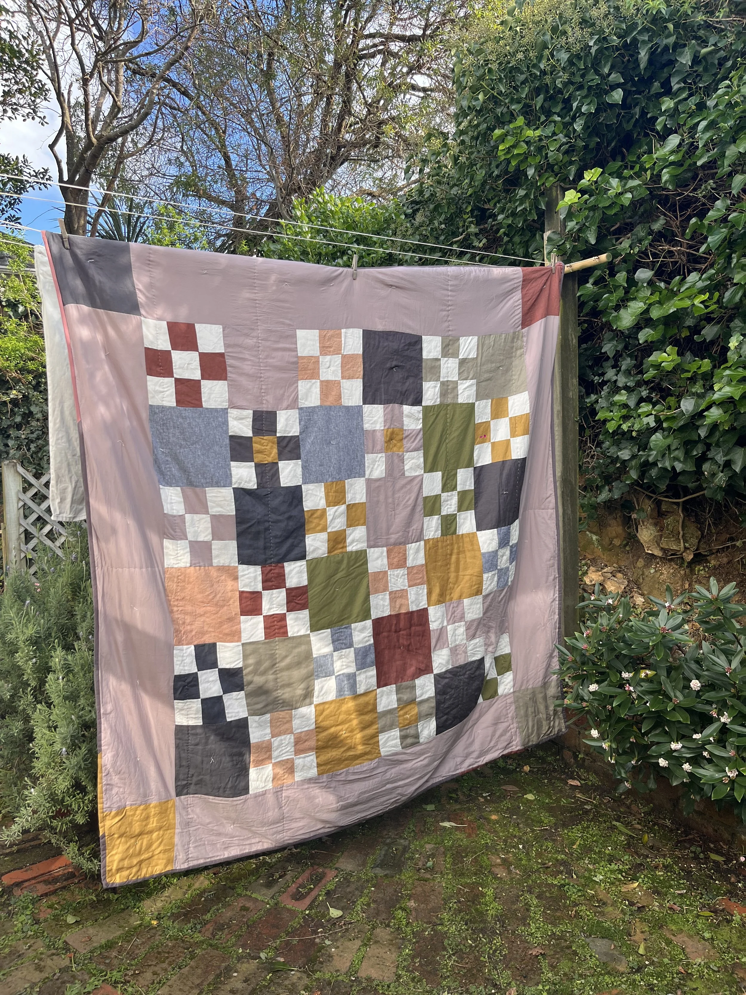 I also mentioned, in my last post, about a light, queen-sized summer quilt I’d made for our bed. At the time, I made two more as Christmas gifts for dear friends. As with my quilt, I used three metres of hand block-printed cotton fabric from India and a lightweight cotton batting. I backed each quilt with soft recycled cotton and pieced together bindings from other scraps. Some of the leftover block prints feature in the bindings so our quilts all coordinate in a small way.