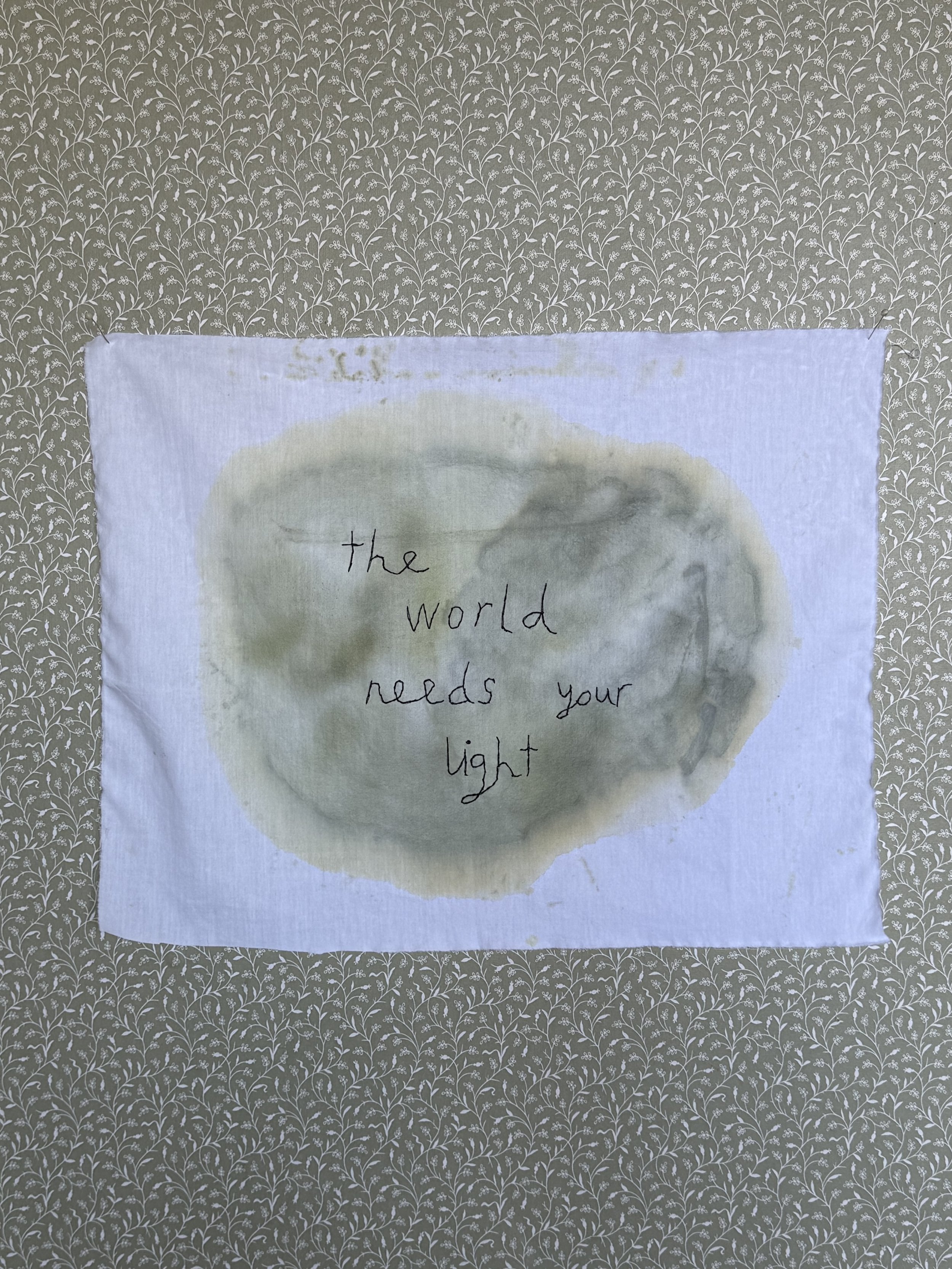 Below: thread + watercolour paint on recycled cotton.