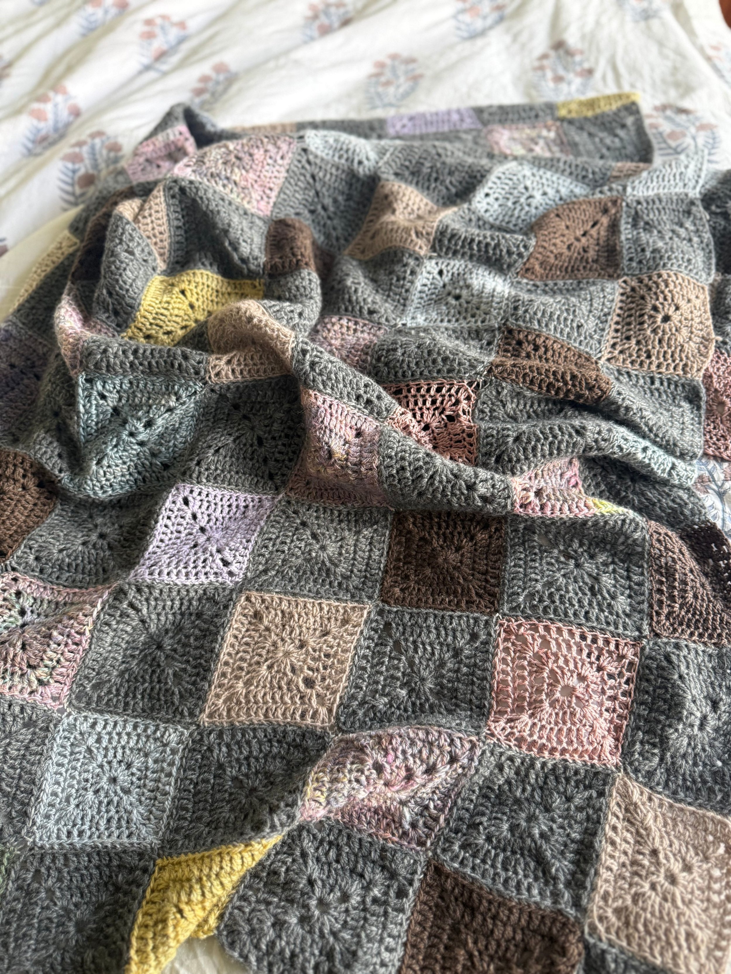 I used a 4mm hook and most of the yarns were 4-5ply, so it’s quite lightweight and airy